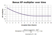 Intended graph of XP multiplier as a function of the time played.